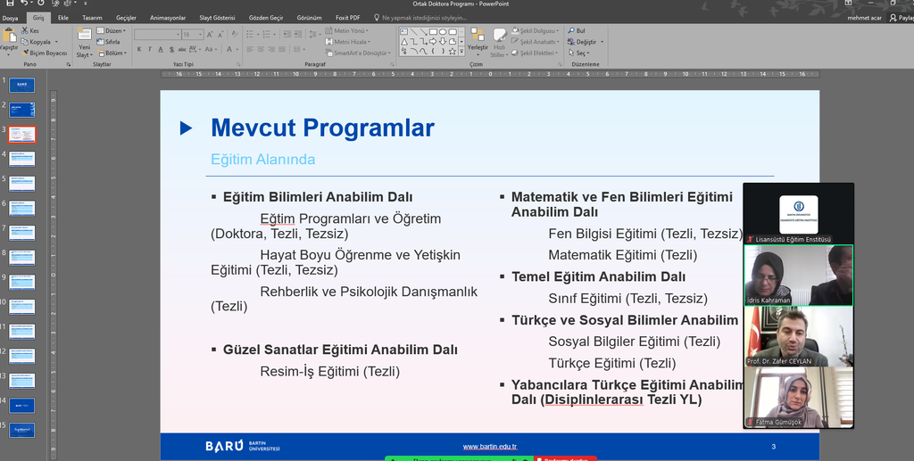 Toplantıya Bartın Üniversitesi Lisansüstü Eğitim Enstitüsü Müdürü Prof. Dr. Zafer CEYLAN ile Karabük Üniversitesi Lisansüstü Eğitim Enstitüsü Müdürü Prof. Dr. Zeynep ÖZCAN’ın yanı sıra her iki enstitünün müdür yardımcıları da katıldı.